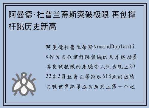 阿曼德·杜普兰蒂斯突破极限 再创撑杆跳历史新高